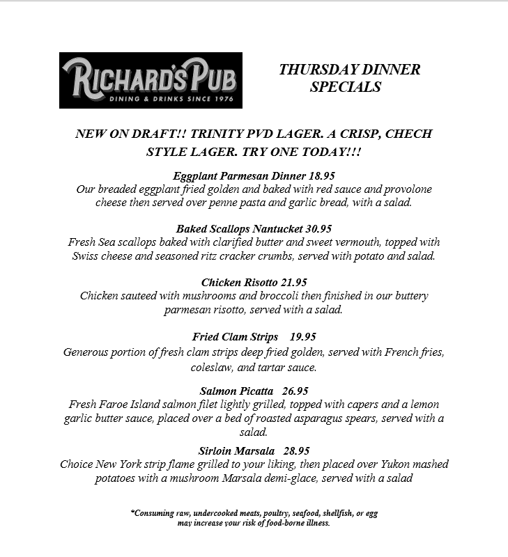 Specials Menu